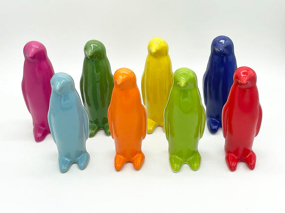 Show your Penguin pride with the complete collection of all seven of our ceramic Penguins, crafted by the artisans at Louisville Stoneware. Each 6 1/2” Penguin is a scaled down replica of the full size plastic sculptures found at all 21c Museum Hotels, with a unique color representing each location. The original Penguins were created by Cracking Art Group, a collective of artists who inspire people to think about art as something that is simultaneously fun and thought-provoking.
